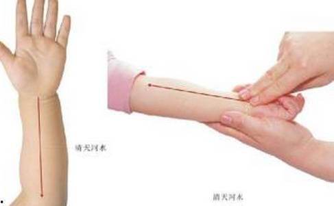 位于手腕横纹中点,向上推为清天河水,向下推为补天河水。这个穴位具有清热解毒、退烧的作用。